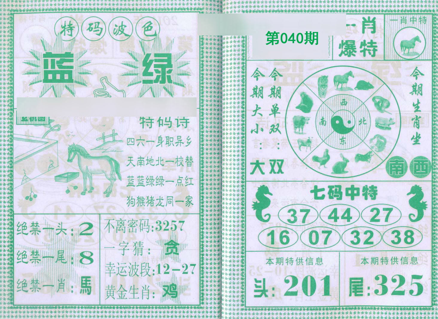 037期单双中特『双双双双』开:羊35 |