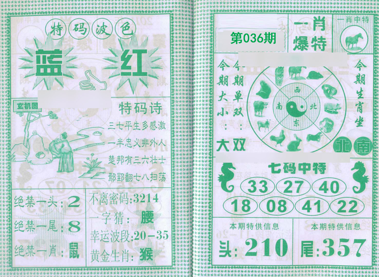 033期【绿波 蓝波】开:蛇01 |