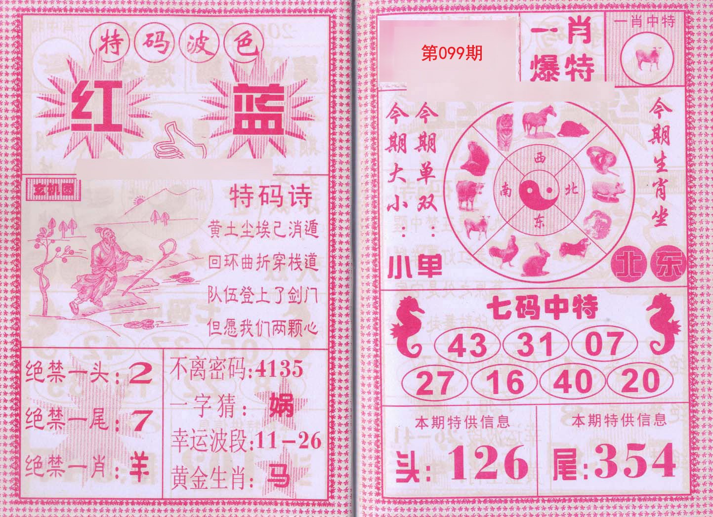 097期男女中特【女肖】虎41 |