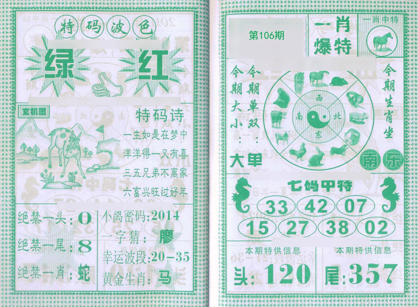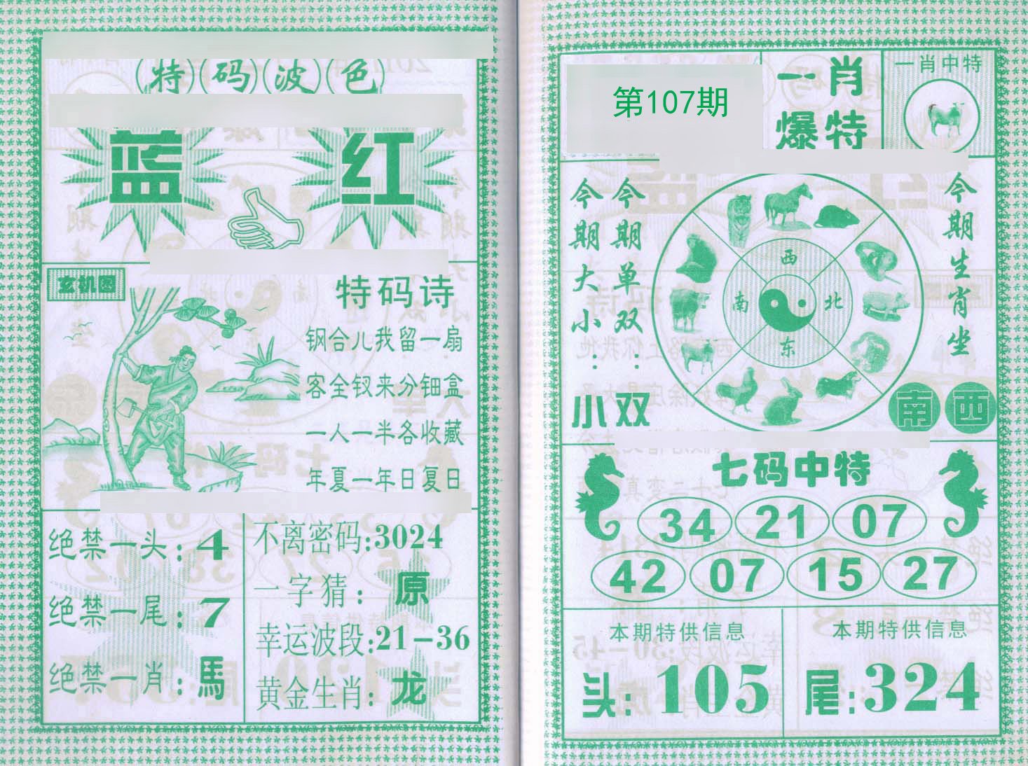 105期【绿波 蓝波】开:蛇38 |