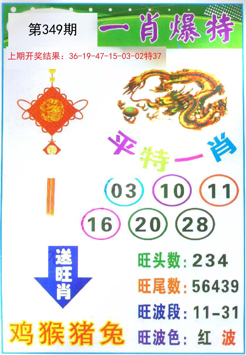 345期【绿波 红波】开:猪43 |