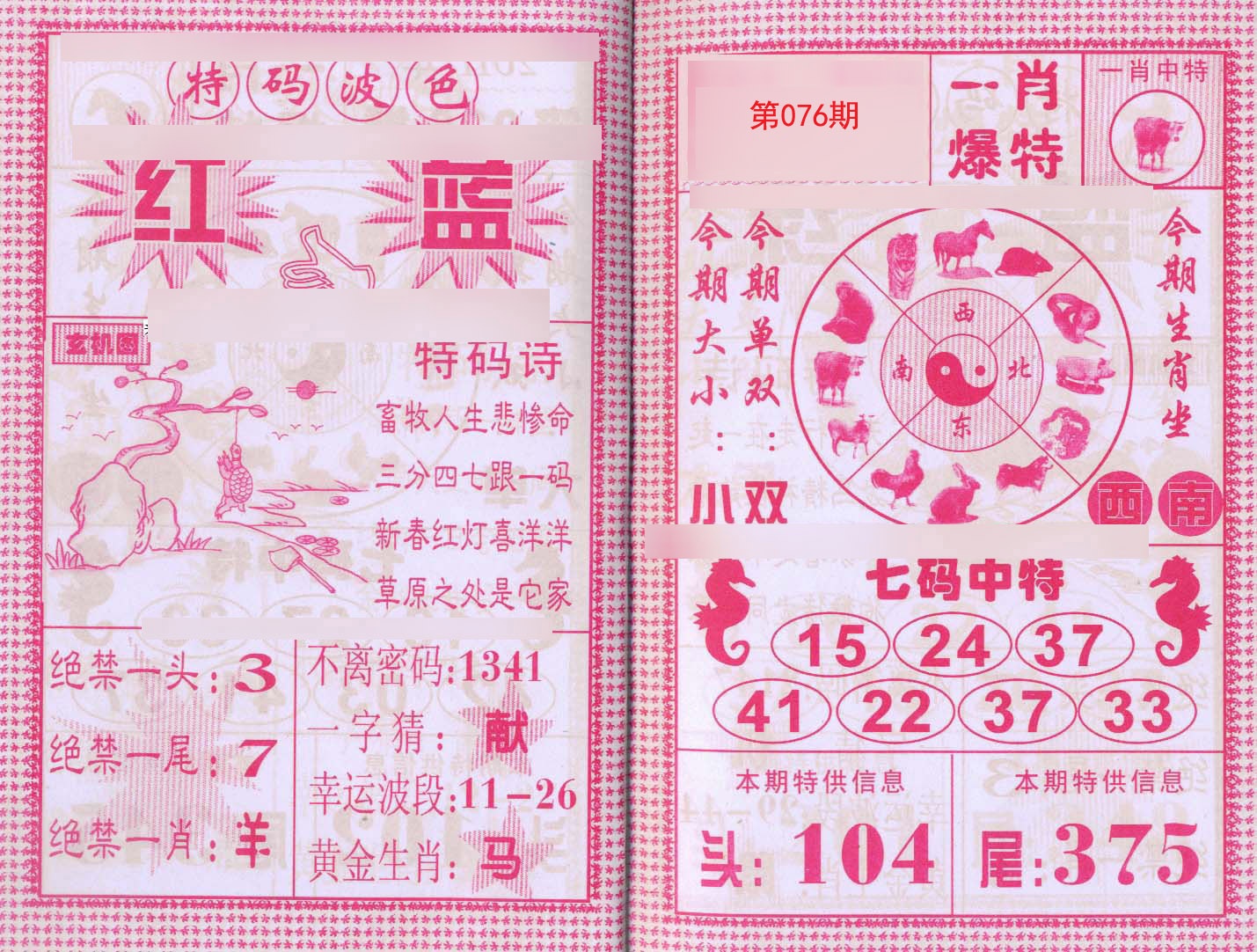 074期单双中特『双双双双』开:鸡34 |