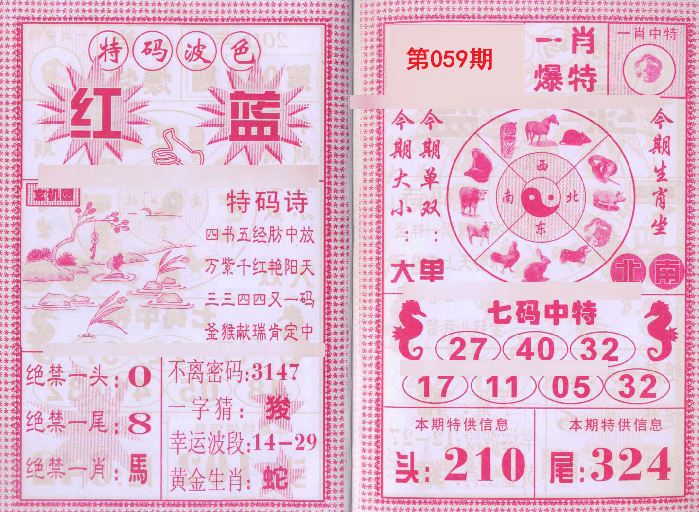 059期--四肖四码--【(牛30)+(龙27)+(蛇14)+(鼠31)】开?? |